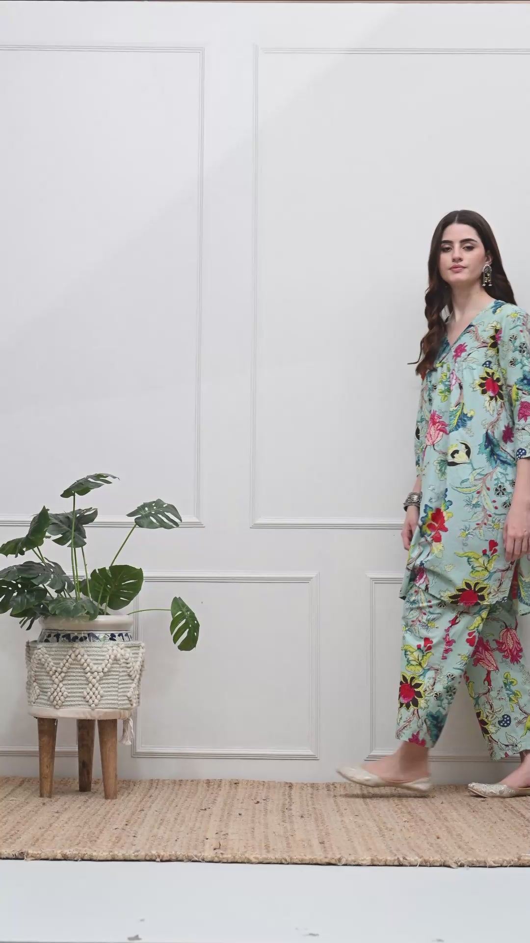 This Kurta Set is created in the finest printed cotton. The kurta comes with a V-neck, and the salwar of the set has 1 pocket.